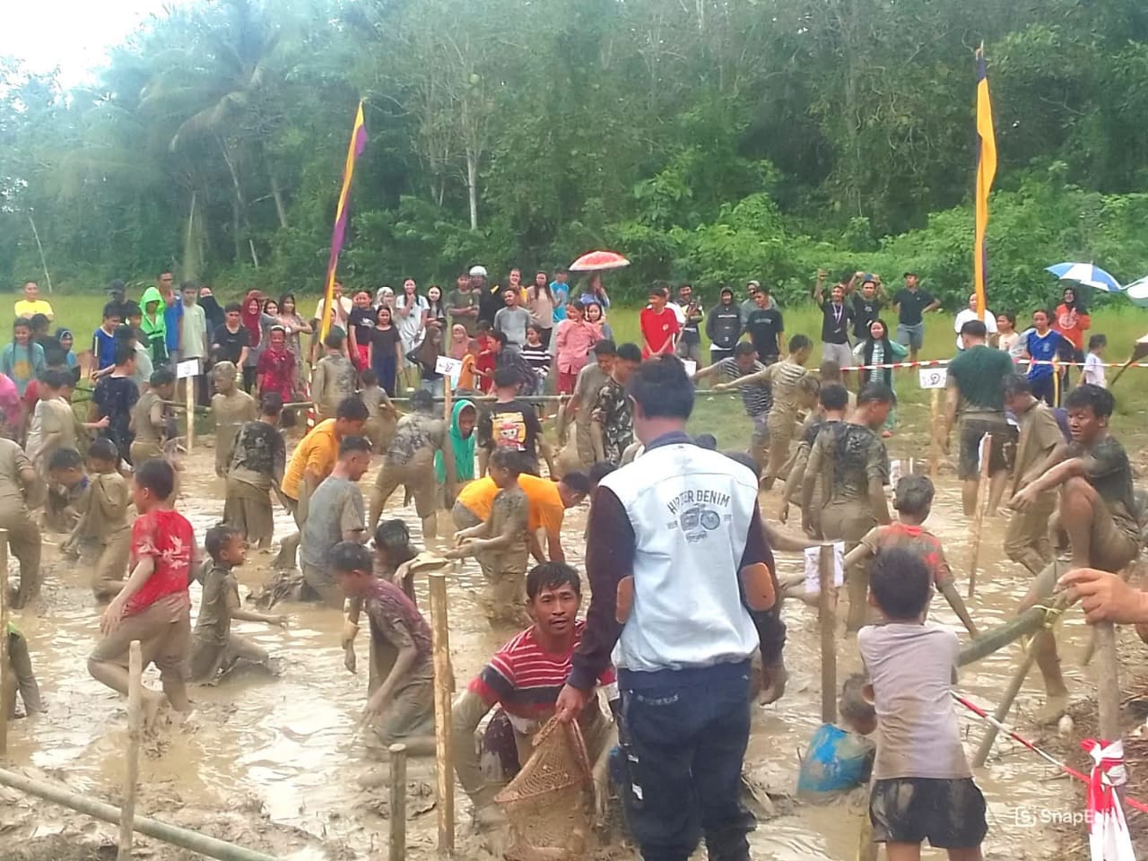 Lomba berlangsung meriah, dipenuhi gelak tawa penonton yang menyaksikan tingkah lucu para peserta saat berusaha menangkap lele yang lincah di kolam lumpur.