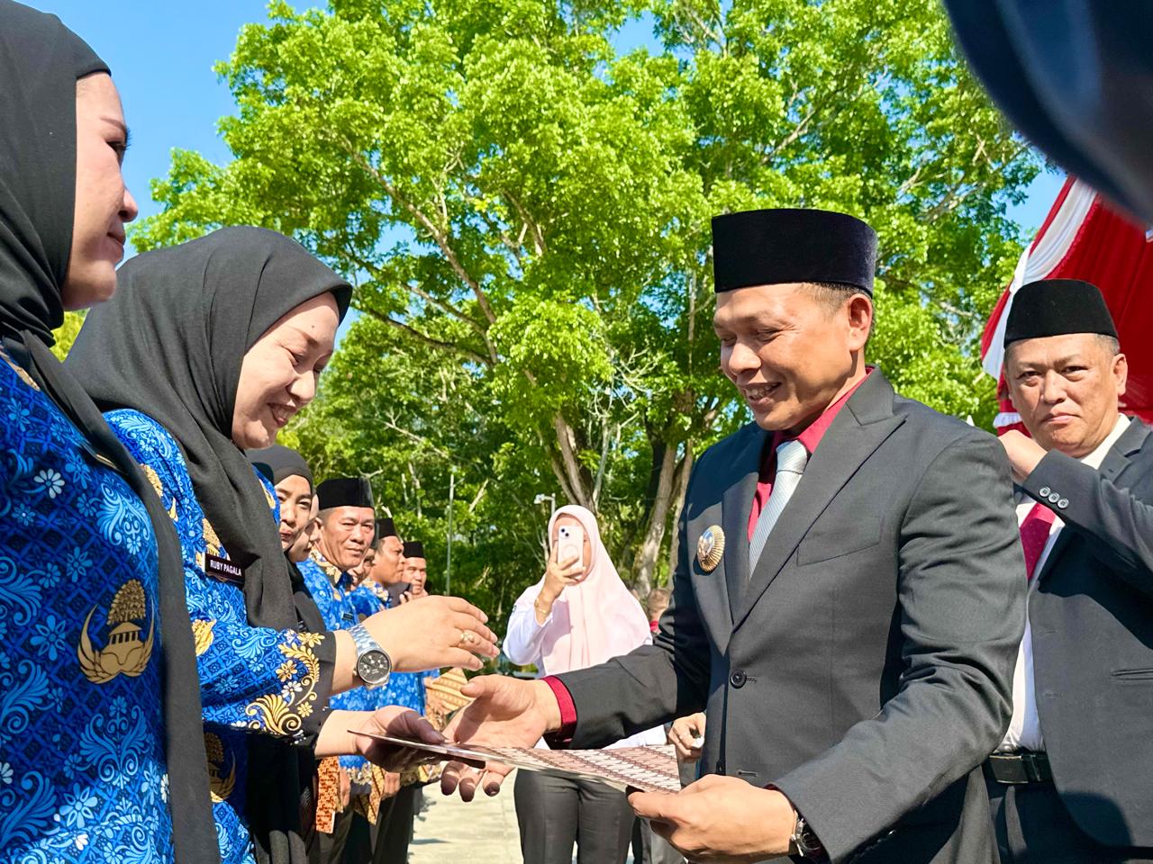 “Belanja pegawai kita cukup besar, sementara ruang pembangunan semakin sempit. Artinya, gaji dan tunjangan saudara berasal dari pengorbanan fiskal daerah. Balaslah dengan kerja nyata, disiplin, dan pelayanan terbaik,” ujarnya.