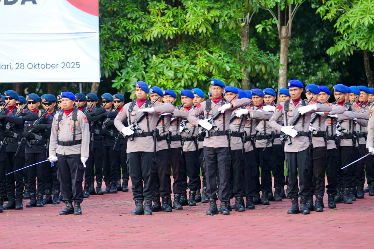 SUARASULTRA.COM | KENDARI – Kepolisian Daerah Sulawesi Tenggara (Polda Sultra) menggelar upacara peringatan Hari Sumpah Pemuda ke-97 tahun 2025, yang berlangsung pada Selasa, 28 Oktober 2025, di Lapangan Apel Presisi Mapolda Sultra.