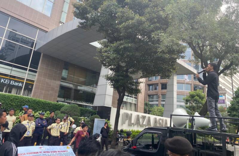 Ketegangan pecah saat massa memaksa mendekati pintu utama gedung Plaza Asia untuk meminta perwakilan perusahaan hadir dan memberikan klarifikasi. Aparat keamanan yang berjaga berusaha menahan laju massa hingga terjadi aksi saling dorong yang membuat situasi semakin panas.