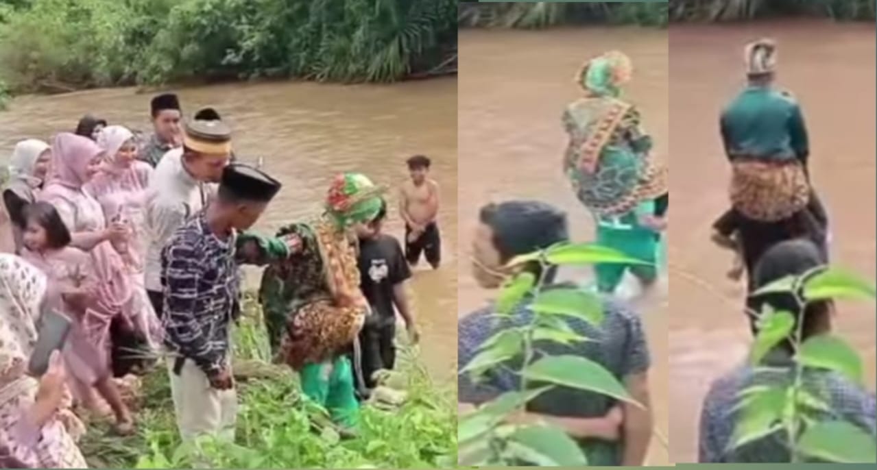 Jembatan Hanyut, Pengantin di Kolaka Timur Digendong Seberangi Sungai