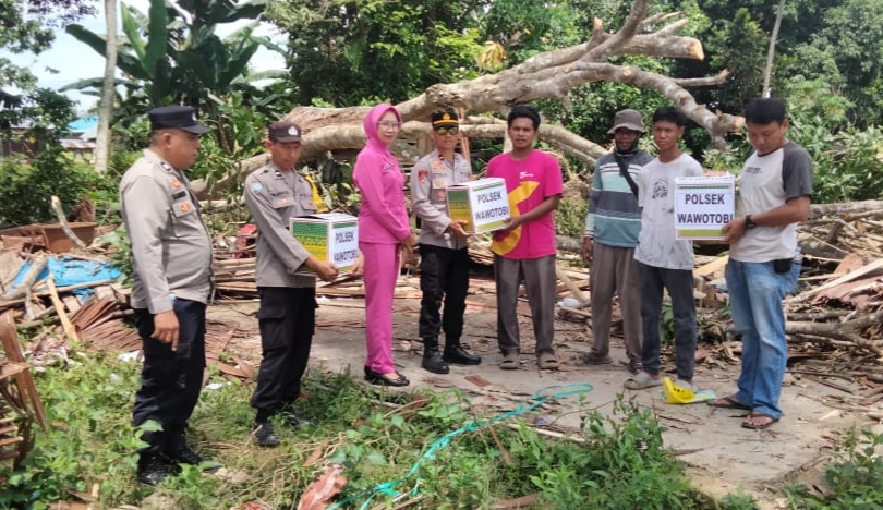 Menindaklanjuti laporan masyarakat, Kapolsek Wawotobi bersama anggotanya segera turun ke lokasi untuk melakukan pengecekan dan memberikan bantuan berupa paket sembako kepada korban dan keluarga. Dalam kegiatan itu turut hadir pula beberapa warga setempat, di antaranya Muh. Abdullah Ash Siddiq, Muh. Raisul, dan Sini Anisa Nuramadani.