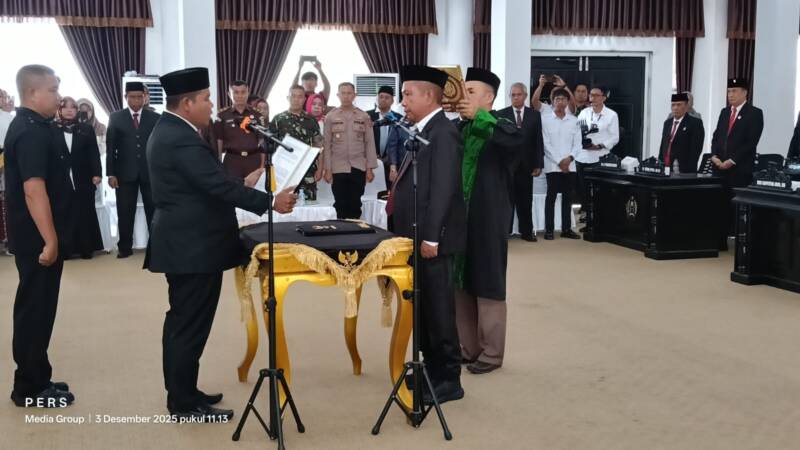 Ketua DPRD Konawe, I Made Asmaya, S.Pd, MM saat mengambil Sumpah Janji Anggota DPRD Pengganti Antarwaktu, Jemi Syafrul Imran, SE.