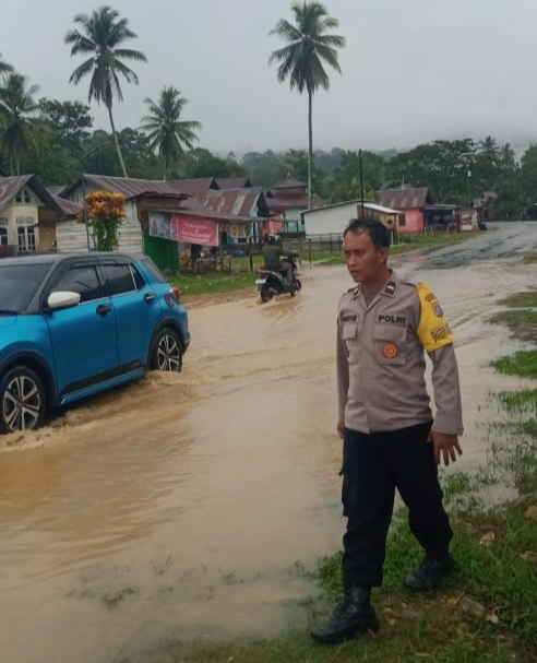 Menerima laporan dari warga, personel Polsek Sampara segera menuju lokasi kejadian. Petugas melakukan pengecekan terhadap rumah warga yang terdampak, membantu membersihkan drainase yang tersumbat, serta mengatur lalu lintas guna memastikan keadaan tetap aman dan terkendali.