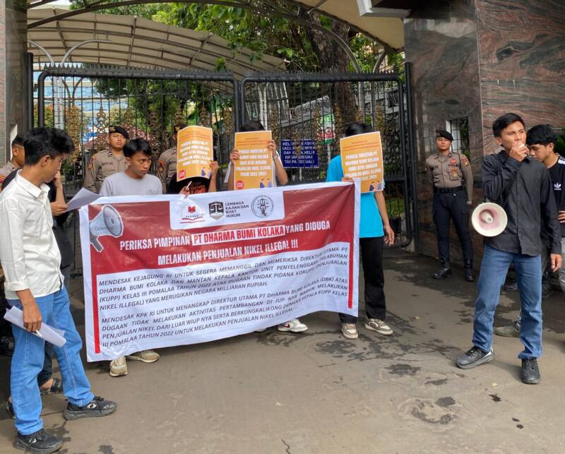 Aksi tersebut menuntut pengusutan tuntas dugaan penjualan bijih nikel ilegal yang diduga melibatkan PT Dharma Bumi Kolaka (DBK) serta mantan Kepala Kantor Unit Penyelenggara Pelabuhan (KUPP) Kelas III Pomalaa pada tahun 2022.