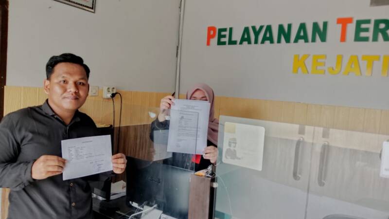 Israwan saat melaporkan dugaan korupsi proyek Jalan Poli-Pilia di Kejati Sultra.