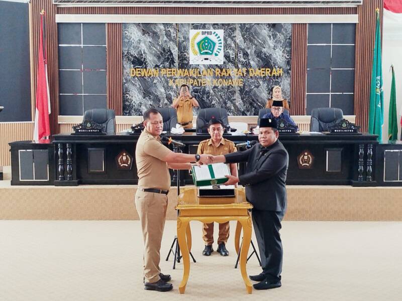 SUARASULTRA.COM | KONAWE – Dewan Perwakilan Rakyat Daerah (DPRD) Kabupaten Konawe, Provinsi Sulawesi Tenggara (Sultra), menggelar Rapat Paripurna dengan agenda penyerahan dokumen Rancangan Peraturan Daerah (Raperda) Bantuan Hukum untuk Masyarakat Miskin usulan Pemerintah Daerah, serta enam Raperda inisiatif DPRD, Senin (15/12/2025).
