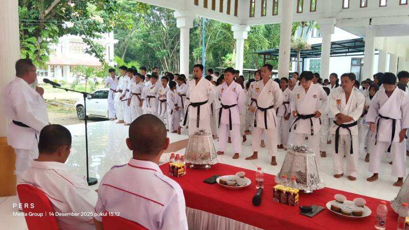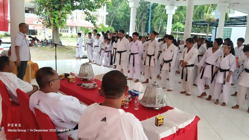 SUARASULTRA.COM | KONAWE – Federasi Olahraga Karate-Do Indonesia (FORKI) Kabupaten Konawe, Provinsi Sulawesi Tenggara (Sultra), menggelar Latihan Gabungan (Gashuku) pada Minggu, 14 Desember 2025. Kegiatan ini berlangsung di Pendopo Merah Putih, Kantor Bupati Konawe, Inolobunggadue.