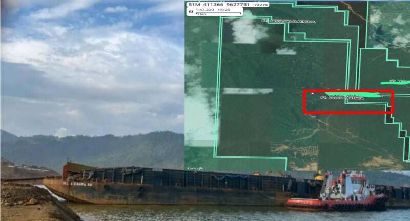 Ketgam: Dugaan tongkang ore nikel PT NPM yang sandar di jetty PT Bososi Pratama tanpa izin pemilik sah serta peta IUP PT Bososi Pratama.