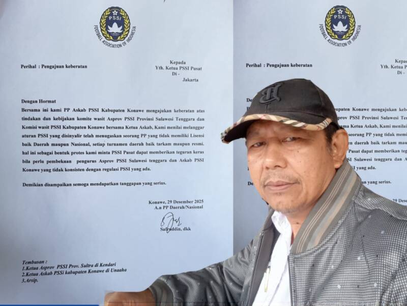 Dalam surat yang ditandatangani Safruddin atas nama Pengawas Pertandingan Sepak Bola Kabupaten Konawe, disebutkan bahwa Komisi Wasit Askab PSSI Konawe dan Komisi Wasit Asprov PSSI Sulawesi Tenggara diduga telah menugaskan pengawas pertandingan yang tidak memiliki lisensi resmi, sementara PP yang telah mengantongi lisensi nasional justru diabaikan.