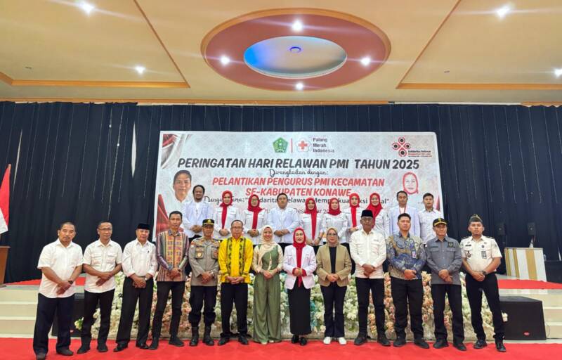 SUARASULTRA.COM | KONAWE – Palang Merah Indonesia (PMI) Kabupaten Konawe sukses menggelar pelantikan Pengurus PMI Kecamatan se-Kabupaten Konawe yang dirangkaikan dengan Peringatan Hari Relawan PMI Tahun 2025.
