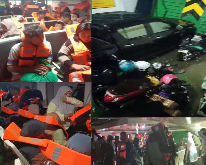 Dalam video yang beredar luas, terlihat sejumlah penumpang mengenakan life jacket atau jaket pelampung sebagai langkah antisipasi. Suasana panik juga terdengar dari rekaman tersebut.