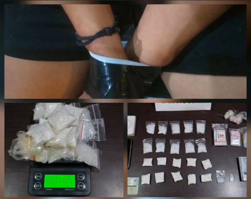 Dari hasil penggeledahan badan, polisi menemukan dua paket sabu, masing-masing berada di genggaman tangan dan di dalam celana tersangka.