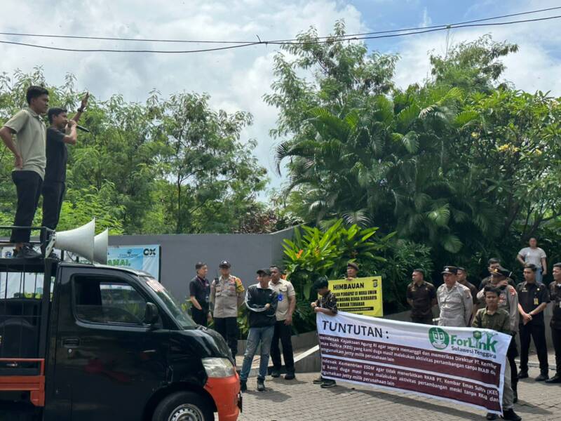 Penanggung jawab aksi, Pandi Bastian, dalam orasinya menegaskan bahwa PT Kembar Emas Sultra diduga kuat menjalankan aktivitas pertambangan tanpa mengantongi Rencana Kerja dan Anggaran Biaya (RKAB) yang sah.