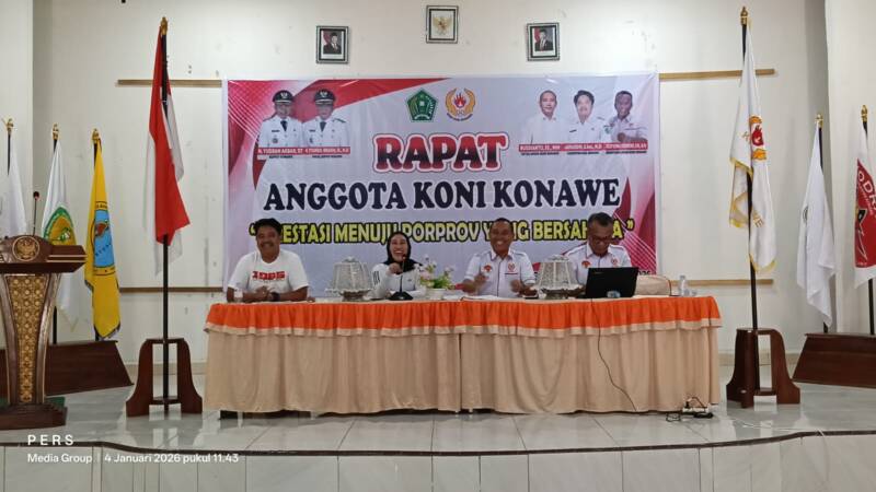 SUARASULTRA.COM | KONAWE – Komite Olahraga Nasional Indonesia (KONI) Kabupaten Konawe menggelar rapat anggota sebagai langkah konsolidasi dan pemantapan persiapan menghadapi Pekan Olahraga Provinsi Sulawesi Tenggara (Porprov Sultra) 2026.