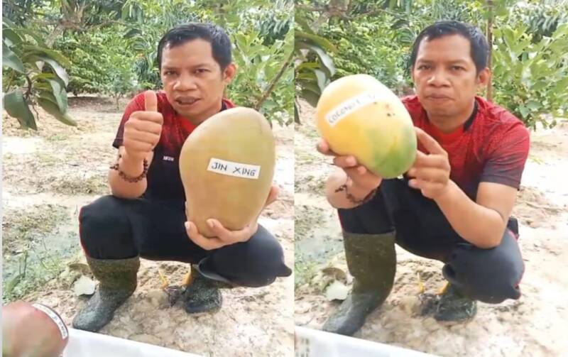 “Ini sudah ditimbang, beratnya sekitar dua kilogram untuk satu buah mangga Hong Ji,” ungkapnya.