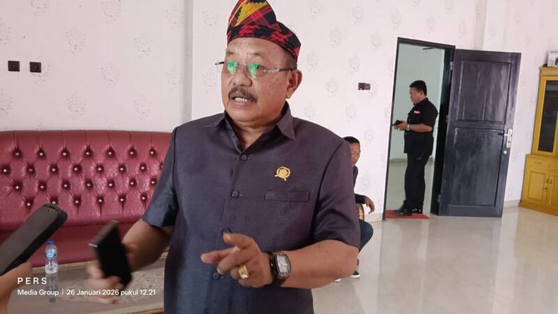 Ketgam: Ketua Komisi III DPRD Kabupaten Konawe, H. Abdul Ginal Sambari, S.Sos., M.Si., saat diwawancarai awak media usai mengikuti sosialisasi Kamus Usulan Pokir DPRD dan tata cara penginputan ke SIPD dalam tahapan penyusunan APBD Tahun Anggaran 2027, di ruang rapat Ketua DPRD Konawe, Senin (26/1/2026).