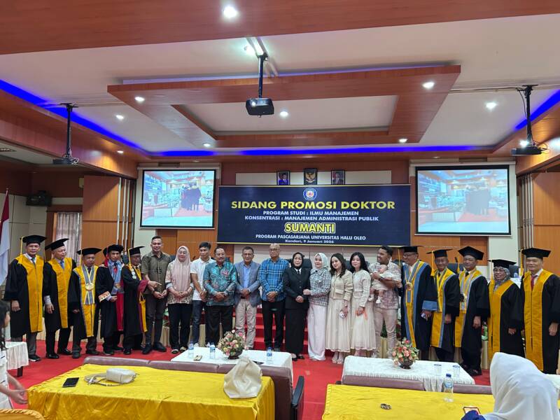 Kali ini, gelar Doktor diraih oleh Dr. Sumanti, S.Sos., M.AP, yang resmi menjadi Doktor ke-448 Universitas Halu Oleo setelah sukses menjalani Ujian Terbuka (Promosi Doktor) pada Program Studi S3 Ilmu Manajemen, Konsentrasi Manajemen Administrasi Publik, Jumat (9/1/2026).