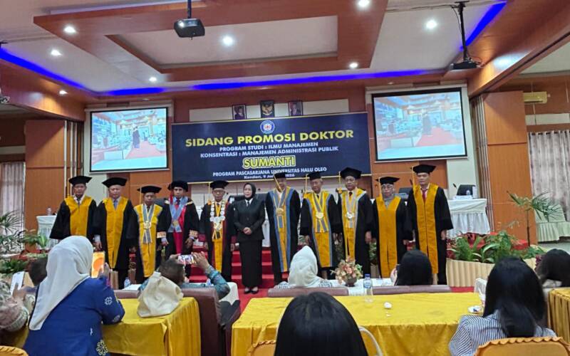 Dengan capaian ini, Dr. Sumanti, S.Sos., M.AP resmi menyandang gelar Doktor dan menambah deretan akademisi bergelar doktor di Universitas Halu Oleo.