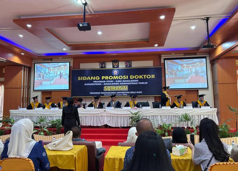 Ujian promosi doktor tersebut digelar di Aula Lantai 1 Program Pascasarjana UHO, Kendari, dan berlangsung sejak pukul 13.30 Wita hingga selesai.