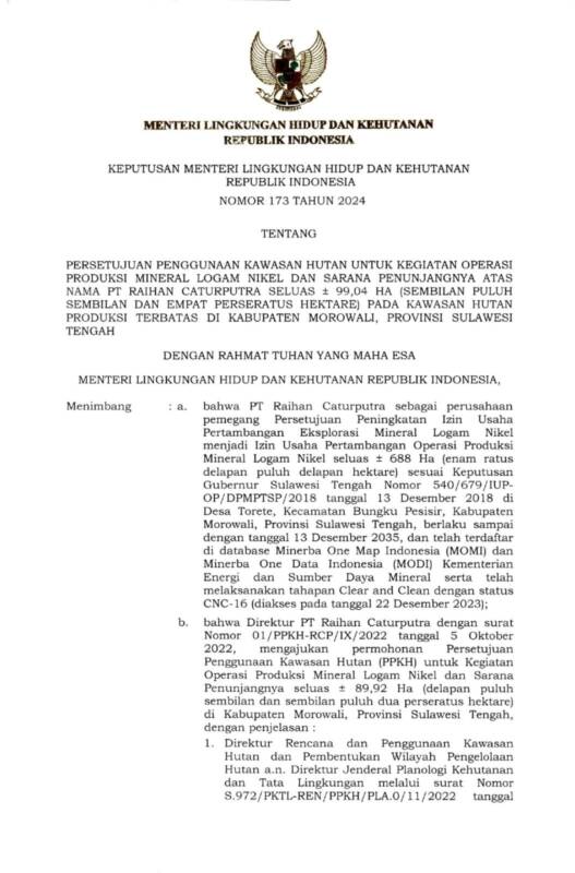 General Manager Non Technical PT Raihan Catur Putra, Wahyu Prasetiyo, pada Sabtu (10/1), menjelaskan bahwa kawasan operasional perusahaan telah mengantongi PPKH resmi dari pemerintah.