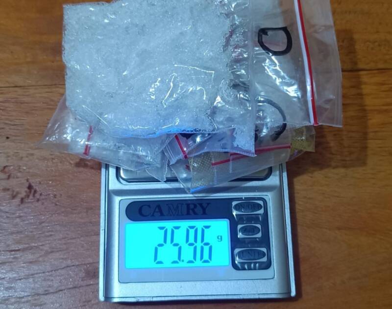 Dari hasil penggeledahan, petugas menemukan barang bukti narkotika berupa 41 sachet kecil dan 1 sachet besar plastik bening berisi kristal bening yang diduga sabu, dengan total berat bruto 25,96 gram.