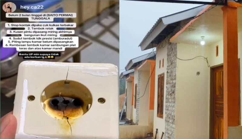 Tak hanya persoalan listrik, Caca juga menyoroti kualitas bangunan rumah subsidi yang dinilainya jauh dari kata layak. Menurutnya, sejumlah kerusakan telah terjadi meski rumah baru ditempati dalam waktu singkat.