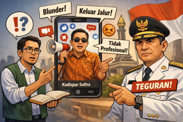 SUARASULTRA.COM | KENDARI – Kepala Dinas Pariwisata (Kadispar) Sulawesi Tenggara (Sultra), Ridwan Badallah, mendapat sorotan dari akademisi Universitas Muhammadiyah Kendari, Andi Awaluddin, terkait gaya komunikasi publiknya di media sosial.