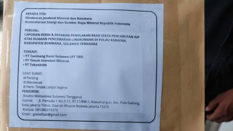 Laporan tersebut diserahkan langsung ke Ditjen Minerba dan dilengkapi dengan berbagai dokumen pendukung, mulai dari foto dan video kondisi lapangan, peta lokasi tambang, hingga catatan sanksi administratif lingkungan yang sebelumnya pernah dijatuhkan kepada salah satu perusahaan, yakni PT Tambang Bumi Sulawesi (TBS).
