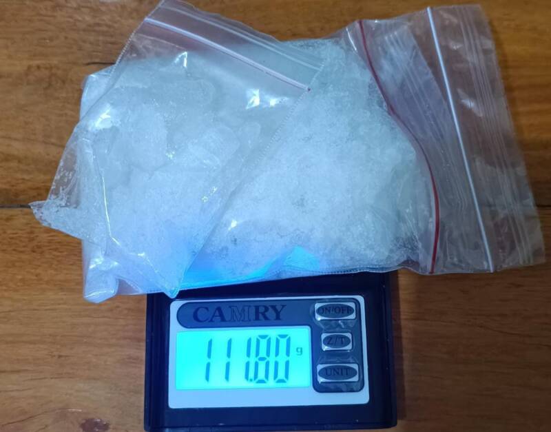 “Dari hasil penggeledahan di lokasi, petugas menemukan dua sachet sabu, masing-masing satu sachet bening ukuran besar dengan berat bruto 101,58 gram dan satu sachet bening ukuran sedang dengan berat bruto 10,24 gram,” ungkap AKP Yusran.