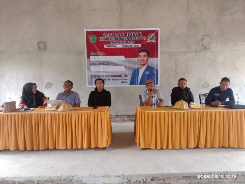 SUARASULTRA.COM | KONAWE – Anggota Dewan Perwakilan Rakyat Daerah (DPRD) Kabupaten Konawe, Refaldi Ferdinand, S.E., melaksanakan Reses II Masa Sidang Tahun 2026 di Desa Walay, Kecamatan Abuki, Kamis (12/2/2026).