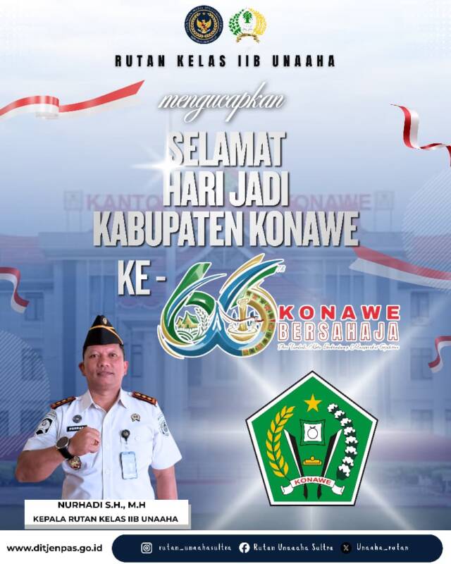 “Selamat Hari Ulang Tahun ke-66 untuk Kabupaten Konawe. Sesuai dengan tema tahun ini, Konawe Bersahaja, kami berharap daerah ini terus tumbuh menjadi kabupaten yang religius, santun, dan sejahtera, namun tetap rendah hati dalam memberikan pelayanan kepada masyarakat,” ujar Kepala Rutan, Nurhadi