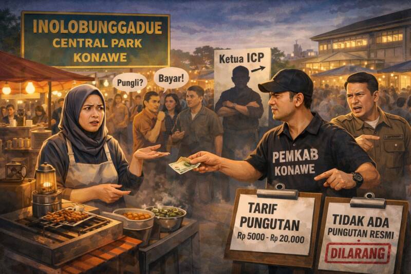 SUARASULTRA.COM | KONAWE – Dugaan praktik pungutan liar (pungli) di kawasan Inolobunggadue Central Park (ICP), Kabupaten Konawe, menuai keresahan di kalangan pedagang kaki lima yang beraktivitas di area tersebut.