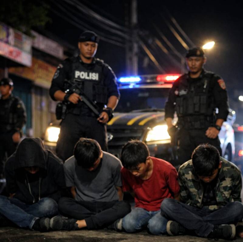 Keempat remaja tersebut diamankan setelah petugas menemukan sejumlah barang mencurigakan yang diduga berkaitan dengan rencana aksi kekerasan.