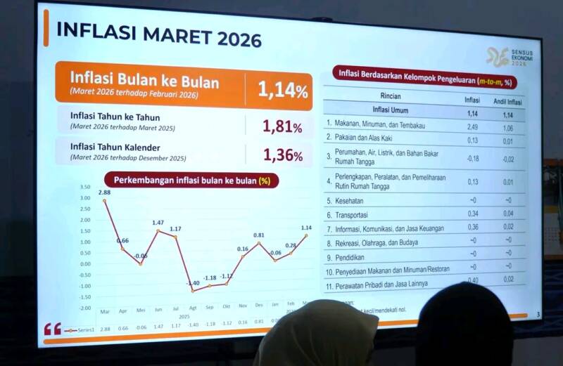 Dalam rilis resmi yang disampaikan, Kepala BPS Kabupaten Konawe Ade Ida Mane, S.St., M.Si., melalui Koordinator Statistik Distribusi BPS Konawe, Hasriati, S.Pi., mengungkapkan bahwa pada Maret 2026 terjadi inflasi year on year (y-on-y) sebesar 1,81 persen dengan Indeks Harga Konsumen (IHK) mencapai 111,14.