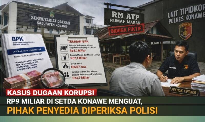 Kasus Dugaan Korupsi Rp9 Miliar di Setda Konawe Menguat, Pihak Penyedia Diperiksa Polisi
