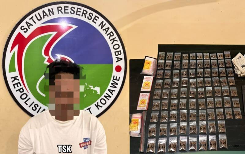 SUARASULTRA.COM | KONAWE – Seorang pria berinisial MC (19), warga Kelurahan Asinua, Kecamatan Unaaha, Kabupaten Konawe, diamankan Satuan Reserse Narkoba Polres Konawe atas dugaan kepemilikan narkotika jenis tembakau sintetis.