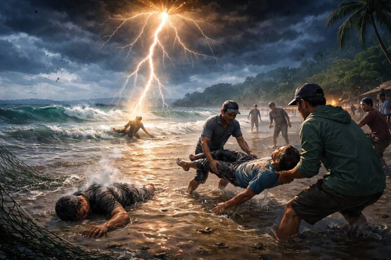 Disambar Petir Saat Pasang Pukat, Dua Warga Konawe Utara Tewas di Pantai Tapularamo